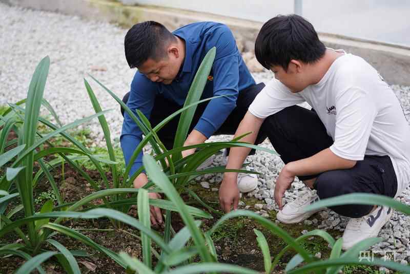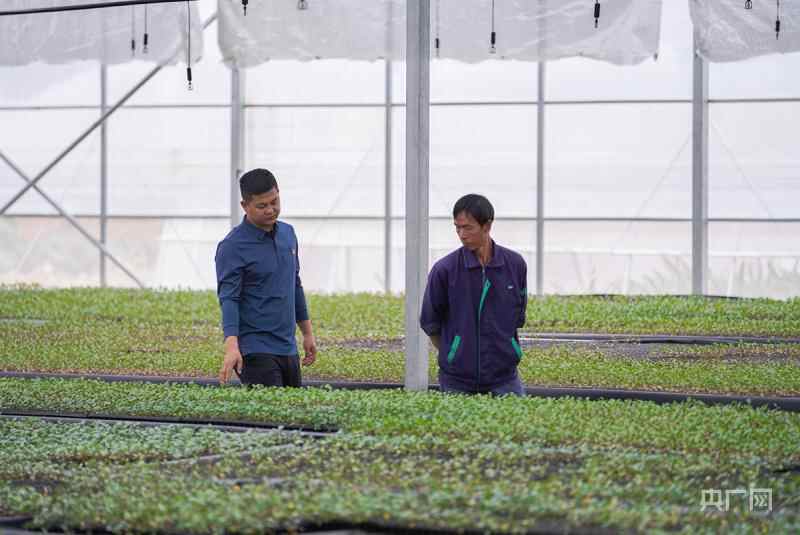 何冰辉在查看产业园内的蔬菜种苗。(央广网记者 官文清摄)
