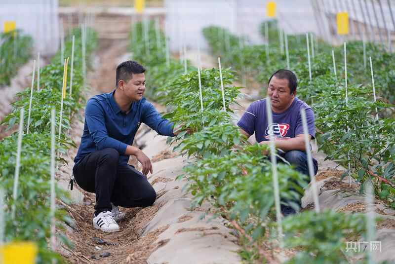 何冰辉在观察辣椒长势。(央广网记者 官文清摄)