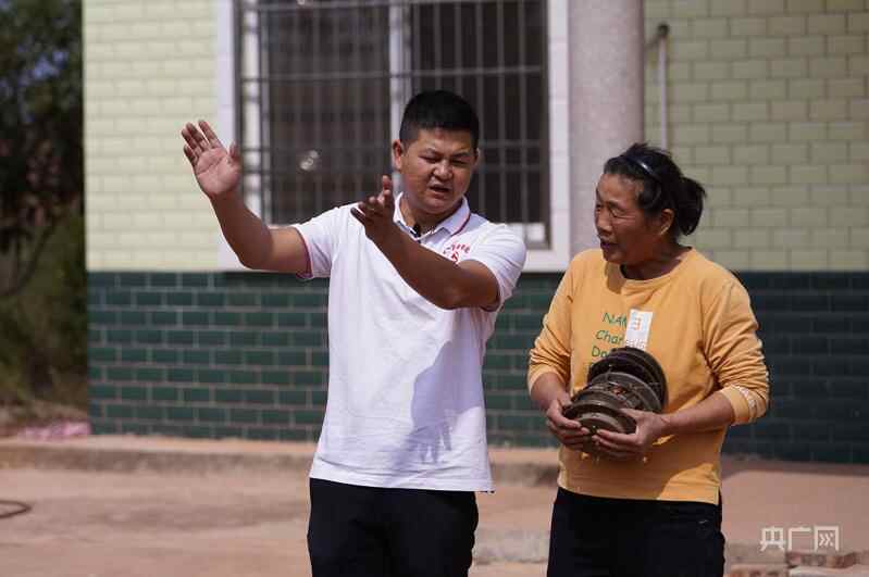 何冰辉与养殖户丁周交流。(央广网记者 官文清摄)