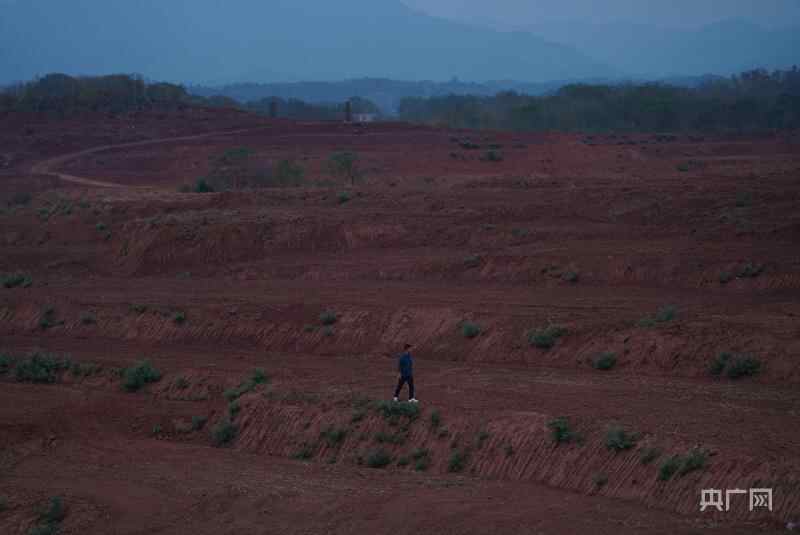 何冰辉走在红土上。(央广网记者 官文清摄)