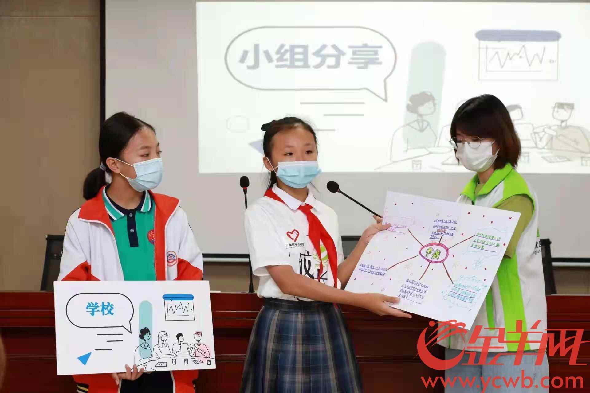 随后,“红领巾议事堂”里,小讲师志愿者们分享了他们在参与粤港澳大湾区儿童互联网大会上发布的调研报告,针对青少年“饭圈追星”现象,用自编自导自演的小品、情景剧的形式生动演绎网络使用场景。生动的数据分析、丰富的肢体语言引发了乡村青少年儿童们深深共鸣,现场气氛热烈浓厚。小讲师与当地的孩子们组成数支小队,孩子们在海报上画出问题的思维导图,从政府、企业、家庭、个人、学校等五个角度就如何加强网络安全、提升保护技巧等进行互动交流。现场陪伴的家长和老师们充当起志愿导师“观察员”,认真聆听孩子们的观点,也给予了及时反馈和指导。主办方表示,希望通过青少年喜闻乐见的活动形式,让孩子们在欢笑中学习网络素养知识,一起抵制网络谣言、网络暴力等不文明现象,倡议传播正能量、树立正确网络观。