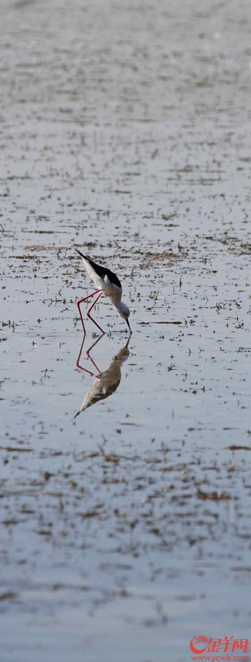 “涉禽类鸟的特点就是脚长、脖子长、嘴巴长,它们比较喜欢站立在浅滩上,用嘴巴来搅动泥沙中鱼虾蟹、及软壳类动物吃。”李女士说,一旦到了候鸟季,觅食区的鸟是最多的,最多时有180多种候鸟来到这里。