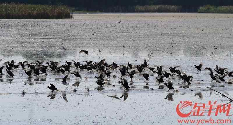 11月14日,在南沙湿地观鸟平台,记者看到,在波光粼粼的浅滩上,成群的白琵鹭、黑翅长脚鹬、黑水鸡、白骨顶鸡等鸟类在驻足栖息,时而在水中捕鱼,时而起落飞翔,追逐嬉戏,构成了一幅生机勃勃的美丽画卷,成为初冬时节里一道靓丽的风景。