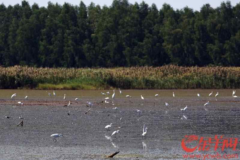 南沙湿地工作人员李女士介绍,整个鸟类觅食区面积1100亩,由于位于珠江出海口独特的地理位置,这里的水质是咸淡水交接的,所以鱼的种类繁多。为了给大批到来的候鸟良好的栖息环境,近年来南沙湿地持续加强湿地保护,积极开展鸟类保护。其中,通过抽水来保持浅滩鸟类觅食区处于低水位的高度,以便于鸟类觅食。