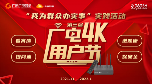 广东省广播电视网络股份有限公司(下称“广东广电网络”)主办的“我为群众办实事”实践活动暨第三届广电4K用户节于11月15日正式开幕。本届用户节结合“我为群众办实事”实践活动,以“看高清、提网速、送健康、保安全”为主线,实施一大批惠民举措,推动发展成果更多更公平惠及全体人民。据悉,广电4K用户节已举办至第三年,正逐步发展为省内知名的惠民品牌活动,往届实施的“五个一”服务、“4K进乡村”行动备受用户好评。今年,广东广电网络将持续在服务、产品、公益等方面发力,推出四大举措用心回馈千家万户。
