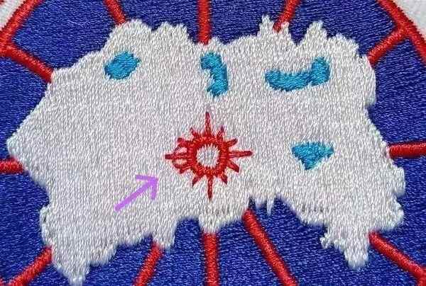 回家后,贾女士仔细查看发现,这件衣服的LOGO(图标)竟然绣错了:中心太阳处多绣了一根弧线,与真品的图标显然不一样。