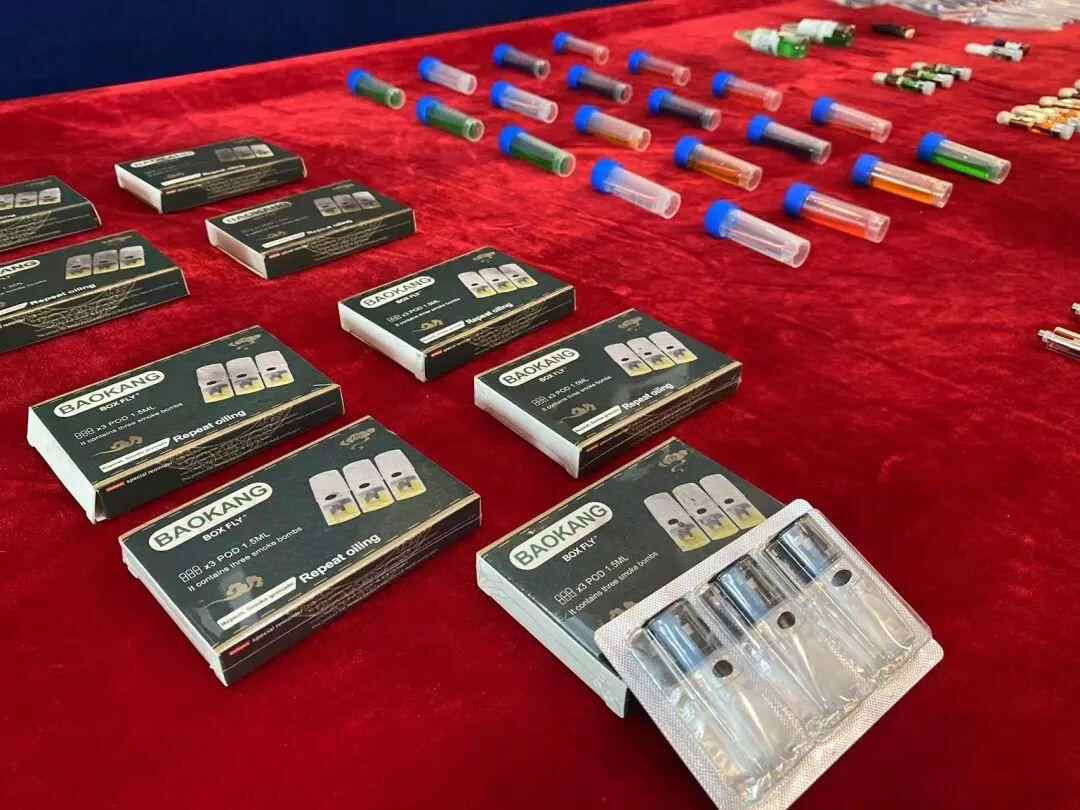 经警方调查,主要涉案人员黄某等人通过一个微信账号,打出可销售“上头”电子烟的“广告”,并进行“接单”。买主下单付款后,再由罗某等人按需求加工制作电子烟烟弹并发货。