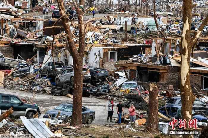 近日,美国肯塔基州当局表示,龙卷风破坏程度之深让他们很难统计10日这场风暴造成的损失。