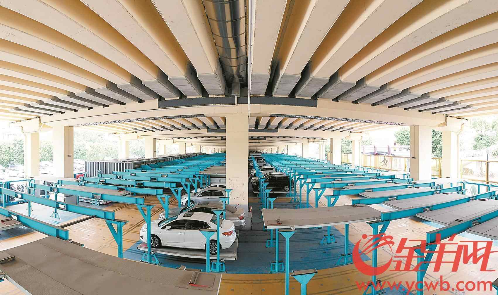 广州环城高速奥体段桥下空间改造的智能停车场里,机器人自动把车挪入停车位