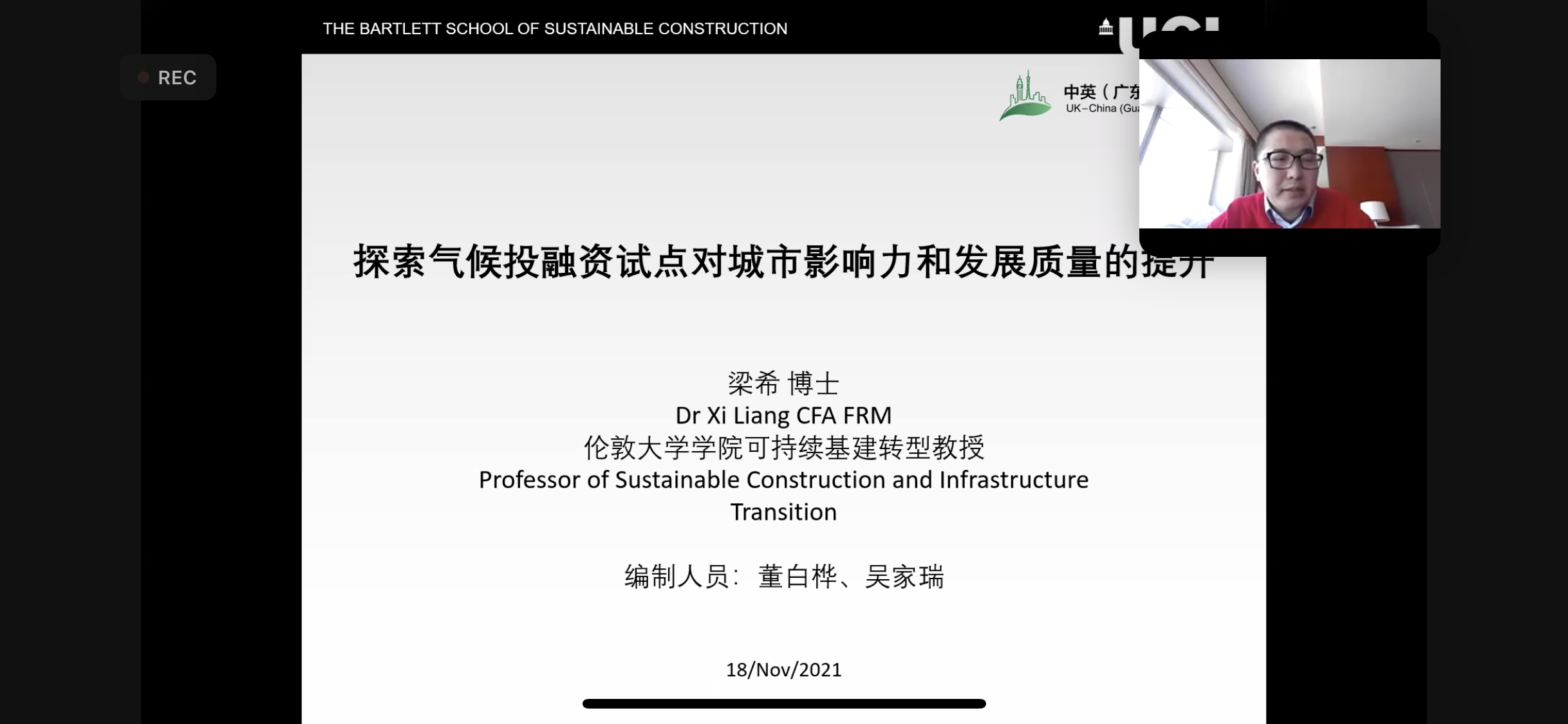 伦敦大学学院的梁希教授围绕《探索气候投融资试点对城市影响力和发展质量的提升》展开分享。梁希教授从人类工业化以来导致的平均温升来引入全球气候正在发生巨大的变化,而这一气候变化对全球的经济可持续发展提出了巨大的挑战。围绕这一背景,梁希教授强调了城市气候投融资的重要性。尽管各城市正在积极开展城市气候投融资,但在筹集资金方面仍然面临着融资壁垒、发展中国家城市气候投资水平不足等重大阻力。据此,梁希教授从三个层面提出城市气候投、融资发展方向