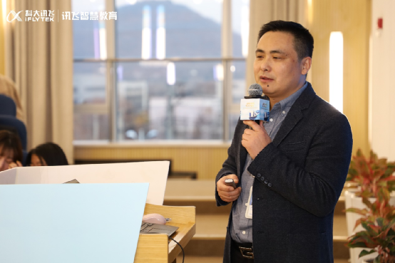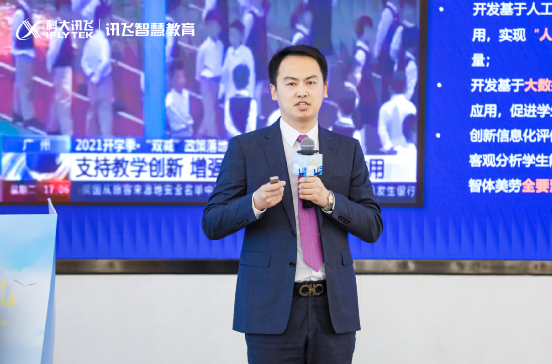 大会上,科大讯飞副总裁周佳峰带来主题演讲《教育回归校园,落实因材施教》,介绍了科大讯飞以人工智能促进“双减”下因材施教智慧校园落地的思考与实践。