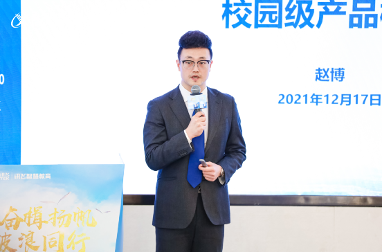 大会上,科大讯飞渠道业务部总经理赵博发布了此次合作伙伴大会的合作产品。赵博表示,科大讯飞智慧教育产品已覆盖教、学、考、评、管、创新教育、五育并举等多个教育场景,并有丰富的应用案例。此次合作伙伴大会,科大讯飞为合作伙伴提供智慧教学、素质教育、智慧管理三个版块数十项产品。