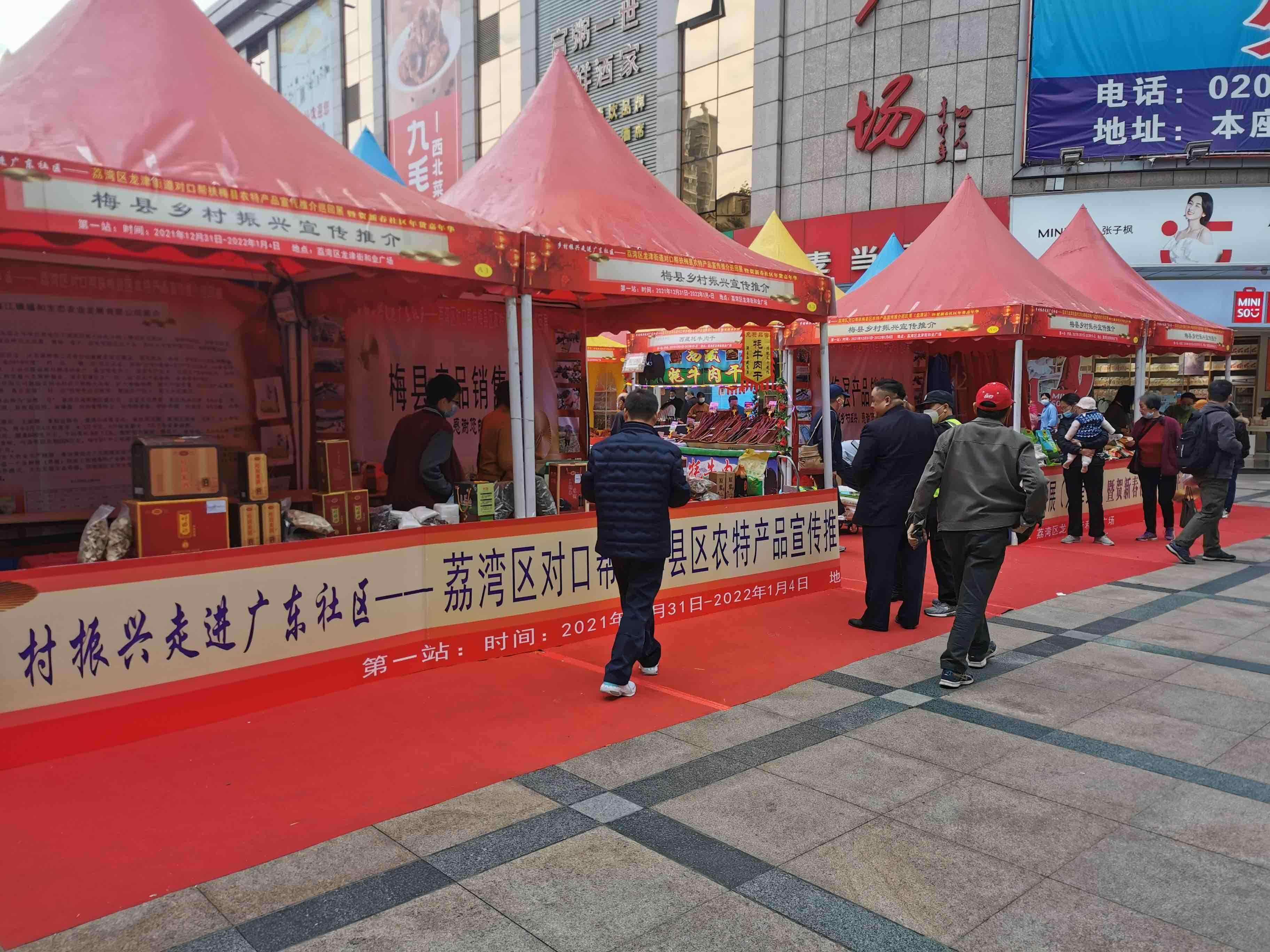 据了解,为大力推动荔湾区对口帮扶梅县区乡村振兴工作,按照政府引导、市场主导、适当补贴、企业运作原则,荔湾区将通过线上及线下的各种展会活动、电商平台,帮助宣传推介各受援地农特产品、旅游资源、投资环境和特色美食。首站活动将持续至1月4日。