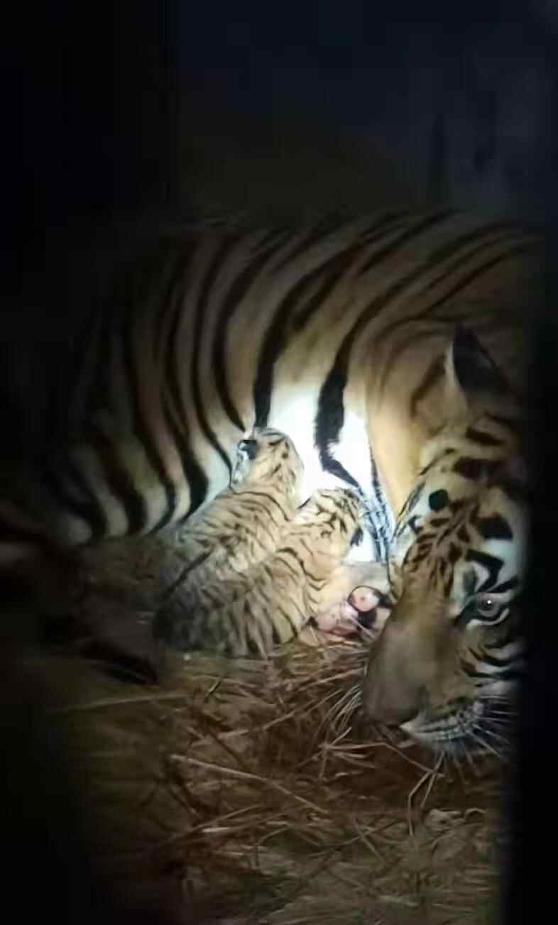 据介绍,两只新出生华南虎宝宝的父亲是来自洛阳的“小满”,谱系号为619;母亲是来自上海的“梦梦”,谱系号为546。“小满”和“梦梦”两只华南虎堪称最勤奋的“英雄夫妻”了,2021年俩“夫妻”先后于3月、9月、12月生产4只华南虎宝宝,创下了“一年三胎四仔”国内高产纪录。目前,两只华南虎宝宝情况良好,已进食母乳3次。