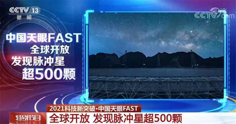 2021年,“中国天眼”FAST建立了符合国际标准的全球开放平台,15个国家24个科研机构的31项国际申请,有27项通过专家评审。利用“中国天眼”FAST,科研团队在银道面脉冲星巡天中取得重要进展,发现新脉冲星超过500颗,包括一批最暗弱的脉冲星、毫秒脉冲星和脉冲双星等。
