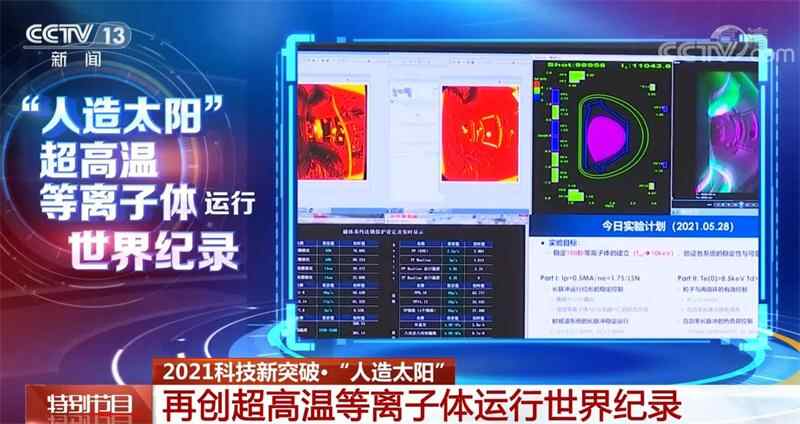2021年5月28日,由中科院合肥研究院承建的全超导托卡马克核聚变实验装置——人造太阳,实现可重复的1.2亿摄氏度101秒和1.6亿摄氏度20秒等离子体运行,创造新的世界纪录,为未来核聚变发电奠定了工程基础。2021年12月,全超导托卡马克核聚变实验装置再度开机运行,开启新一轮实验,将让“人造太阳”向着更“热”更“持久”发起冲击。