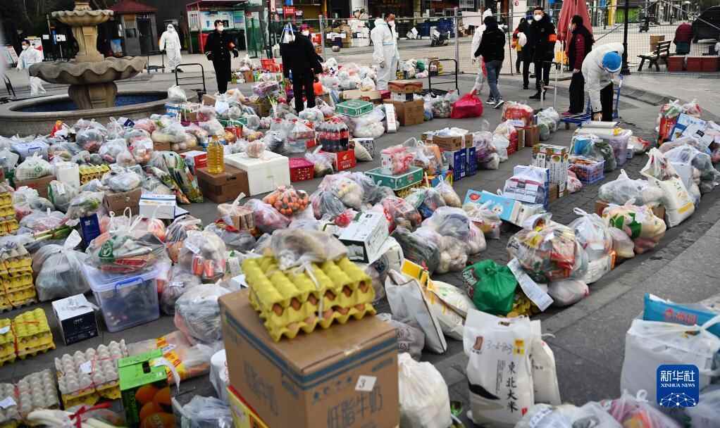 西安市雁塔区电子城街道裕昌太阳城社区是一个拥有2700多户居民的封控区域。为保障居民生活,负责这里的20名各级下沉干部、近百名志愿者,夜以继日将居民线上购买的生活物资运送到每家每户。