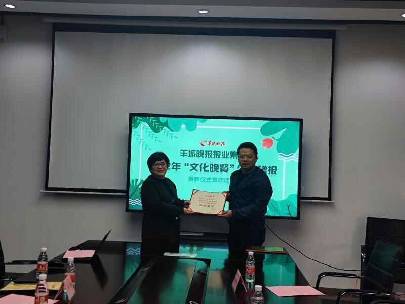 1月13日,这一“文化晚餐”公益赠报授牌仪式在羊城晚报社举行,捐赠方代表广东美德森石油化工有限公司总经理曾远彬及受赠方代表西藏自治区波密县委副书记、常务副县长钟泳薪,西藏自治区波密县教育局副局长麦剑文,还有这次合作的牵线人——广东省人民政府文史研究馆馆员、省文史馆文化遗产研究院副院长张宇航及羊城晚报专职编委黄卫红出席了赠报仪式。