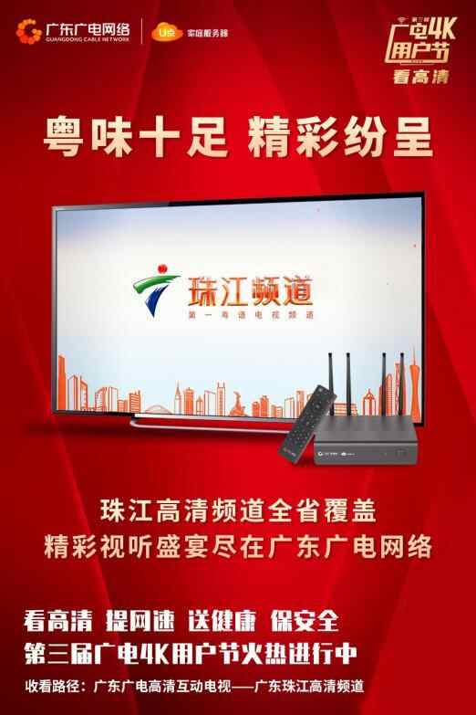 广东广电网络沿着“看高清、提网速、送健康、保安全”这条鲜明的惠民主线,已推进高清翡翠、高清珠江、高清/4K央视奥林匹克等频道的全省落地和信号覆盖工作,广东广电用户将畅享高清粤语节目收视、4K超高清观赛体验。