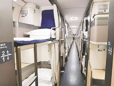 新型卧铺动车组增加了车体高度,上铺的空间更加宽裕,旅客在上铺也能够舒适地坐立。在夜间开行的动卧列车上,还有暖心夜宵。列车为长途旅客免费提供一份餐食。