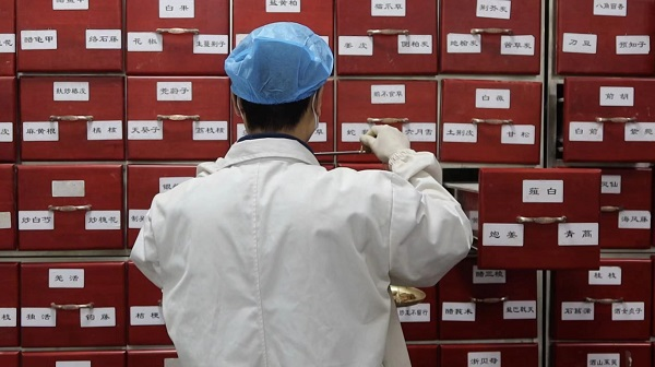 (小鹿中医调剂中心的药师正在为患者抓药)