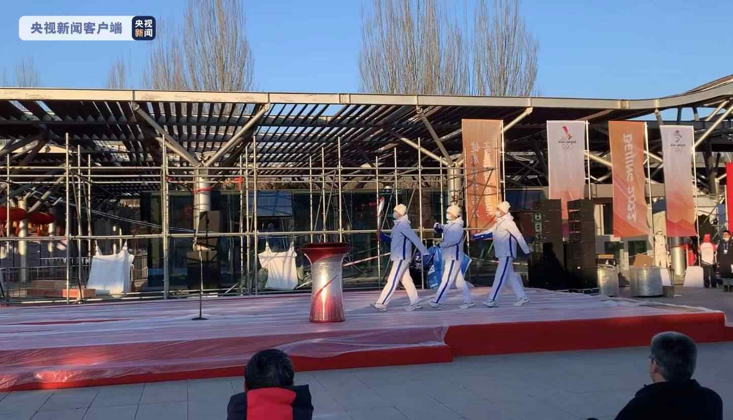 1月27日上午,在奥林匹克森林公园南园南门外广场,北京2022年冬奥会火炬接力启动仪式举行了全要素演练,并模拟了火炬在奥林匹克森林公园的传递流程。