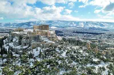 图为1月25日雪后拍摄的希腊雅典卫城。新华社发
