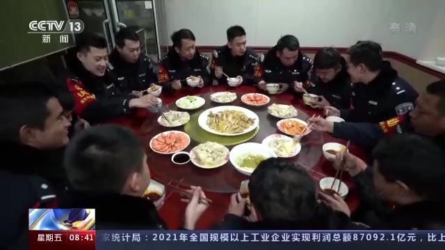 一天的巡护进入尾声,天色也早已黑透,巡护队伍归来的时候,其他民警们正在准备小年夜的团圆饺子。
