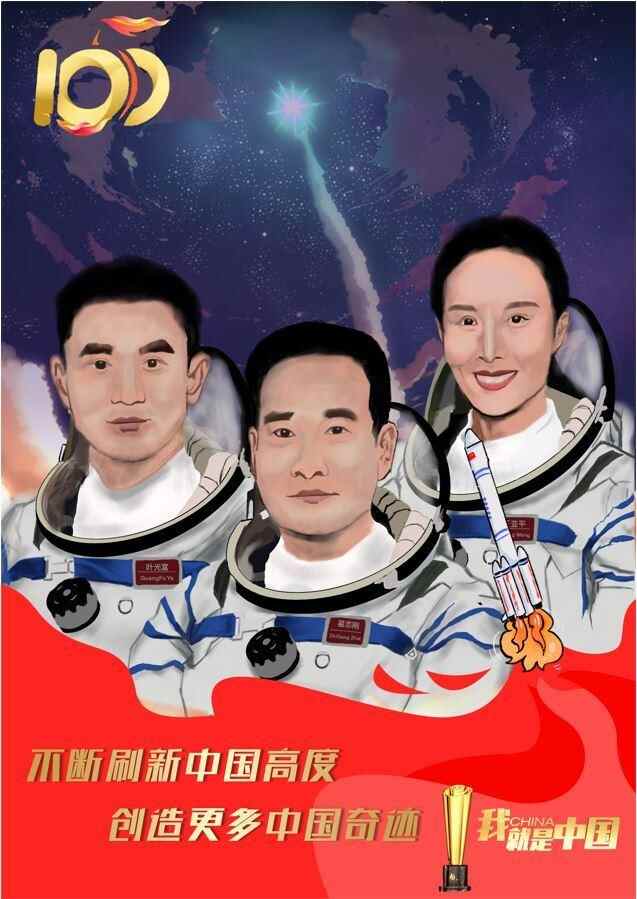 神舟十三号航天员乘组(漫画作者:张毅)