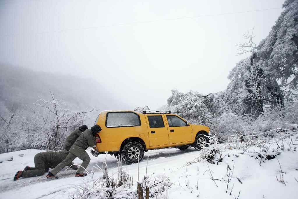 300米、600米、800米……黄色皮卡车盘山而上,海拔越来越高,树枝上冰凌越来越多,淅淅沥沥的雨滴也变成鹅毛般的雪花。沿着线路巡视10多个铁塔后,道路越来越陡峭。尽管安装了防滑链,车轮仍不停打滑。