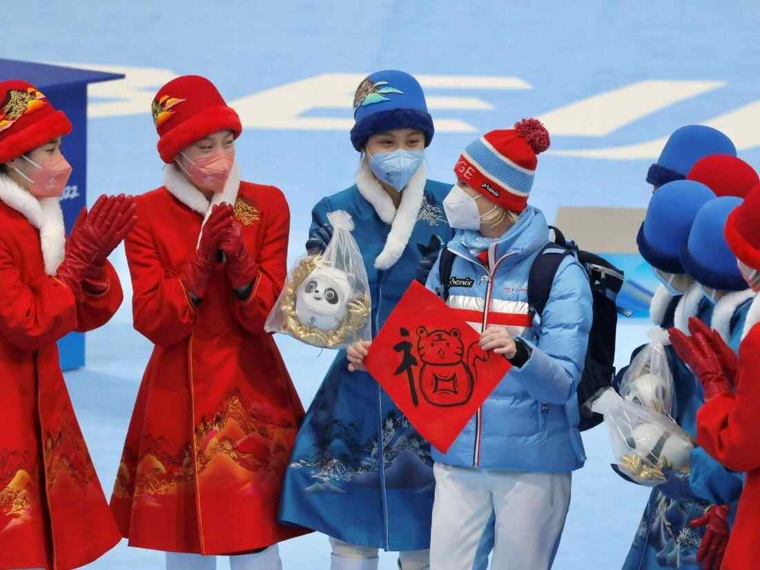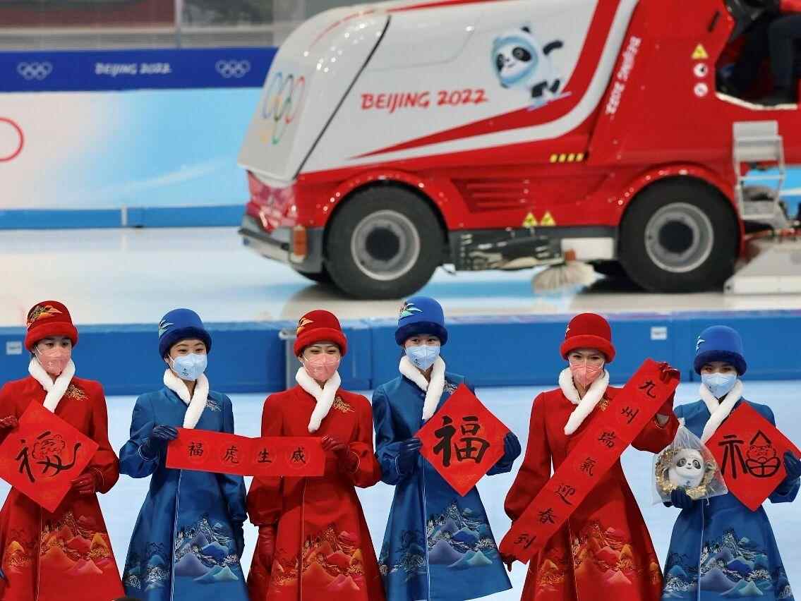 光明网讯(记者刘希尧)2022北京冬奥会恰逢中国传统的新春佳节。1月30日,在国家速滑馆“冰丝带”里,剪纸、中国结、灯笼把“冰丝带”装点得年味十足。颁奖区,礼仪姑娘们拿出了“福”字和对联合影。“九州瑞气迎春到,四海祥云降福来”,横批“福虎生威”。