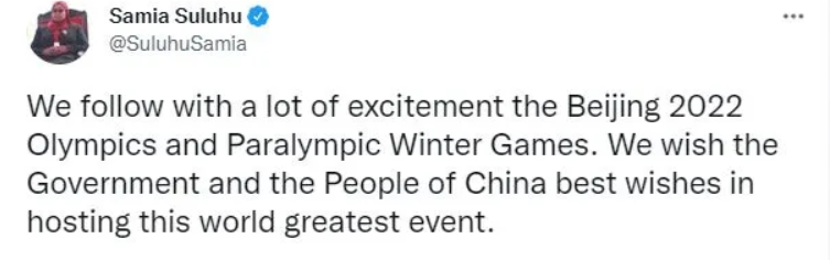 坦桑尼亚总统通过社交媒体祝福北京冬奥会