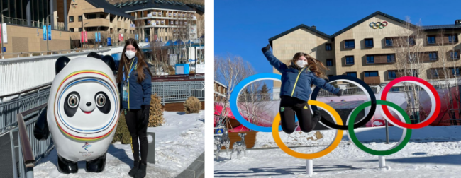△图为巴西代表团自由式滑雪运动员萨布丽娜·卡斯在北京冬奥村拍照留念