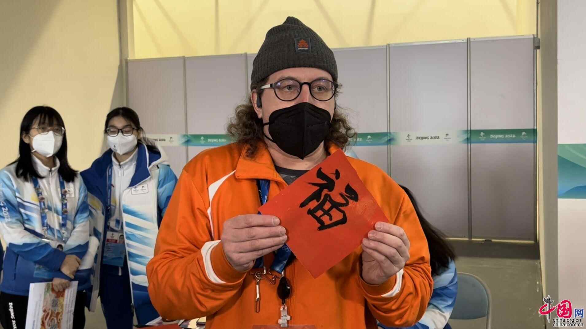 活动现场,外国记者和持证转播商工作人员也纷纷拿起毛笔,写福字,写春联,表达新春祝福。采访间里更是满满年味,红灯笼、布老虎、冰墩墩和雪容融的吉祥物营造出中国年的喜庆氛围。志愿者郭涛认为,向外国媒体介绍中国的民俗活动并得到他们的认可非常有意义,同时也加深了自身对中国传统文化的认识。