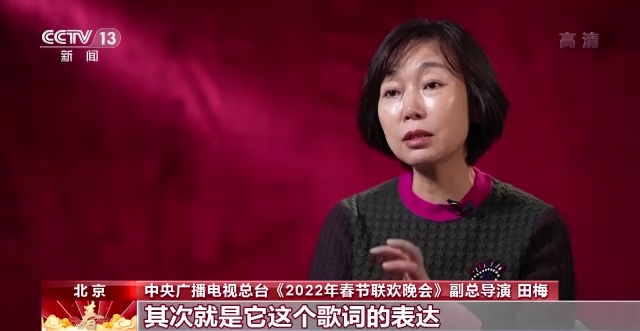 总台《2022年春节联欢晚会》副总导演 田梅:所以这首歌它又表达的是海峡两岸暨澳门香港就是这样的一种文化相融,黄河长江孕育了我们的生命。这种表达就是我们想要的,想站在国家的舞台上去呈现的一种艺术形式。