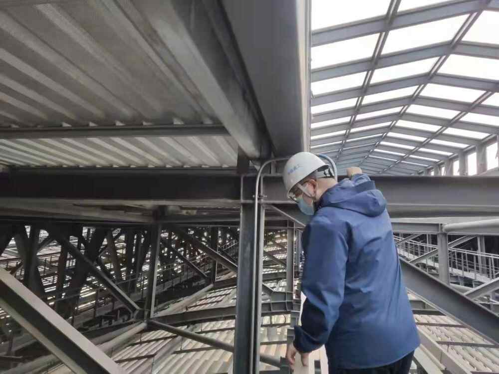 李硕在检查清河站候车厅吊顶(受访者供图)