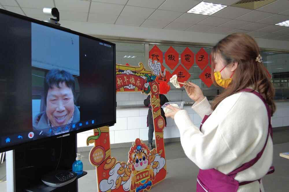 代傲电子控制(南京)有限公司就地过年人员通过视频给家人拜年。新华社记者杨绍功 摄