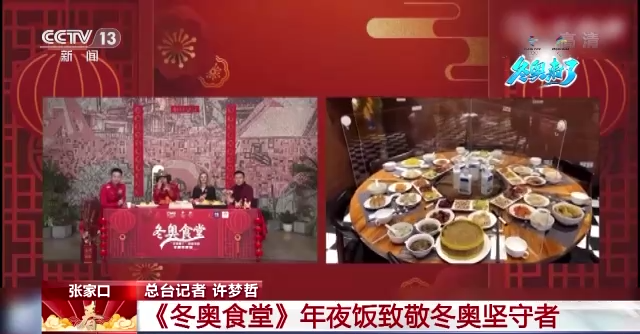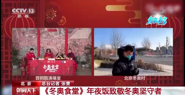 总台融媒体节目《冬奥食堂》第五期在北京冬奥组委的所在地北京首钢园内进行新媒体直播,节目通过视频连线的方式揭秘北京冬奥村运动员的年夜饭菜单、张家口赛区冬奥媒体工作者的除夕工作餐以及闭环奥运场馆内工作人员的年夜饭。