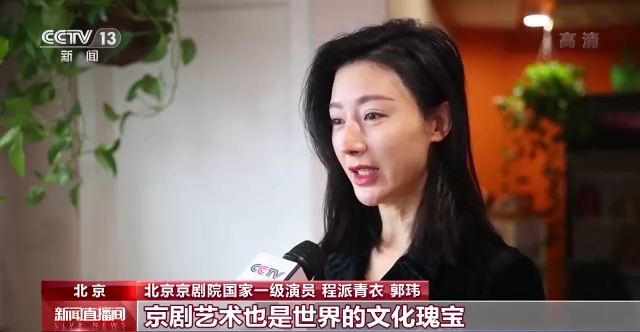 北京京剧院国家一级演员 程派青衣 郭玮:奥运是世界的,京剧艺术也是世界的文化瑰宝,这种文化交流碰撞的时机,以我们京剧的方式来参与奥运会,来助力、来喝彩奥运会,所以我们就以这种京歌的方式来歌颂它、歌唱它。