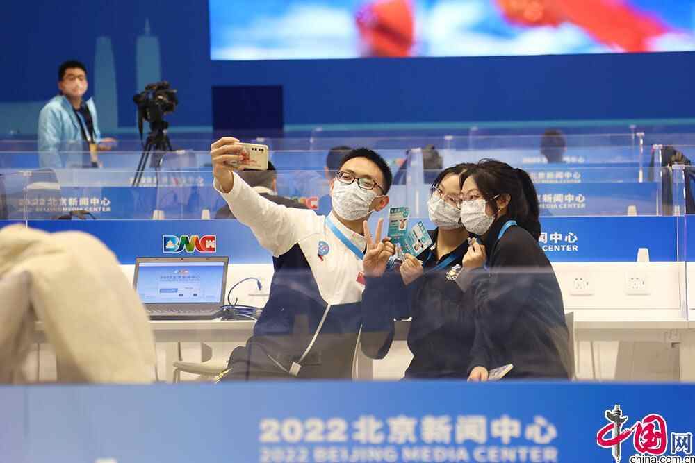 2月4日晚,第二十四届冬季奥林匹克运动会开幕式在北京国家体育场举行。志愿者在2022北京新闻中心合影留念。中国网 伦晓璇摄影