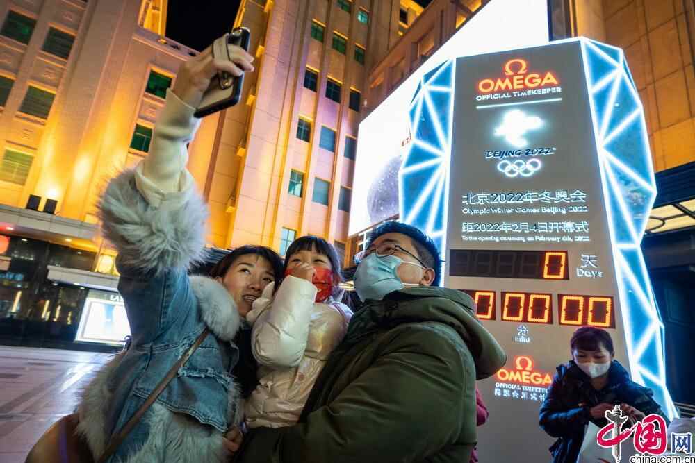 2月4日晚,第二十四届冬季奥林匹克运动会开幕式在北京国家体育场举行。众多北京市民与游客在王府井步行街的北京2022年冬奥会开幕式倒计时牌前,共同倒计时迎接北京冬奥会开幕。中国网 郑亮摄影