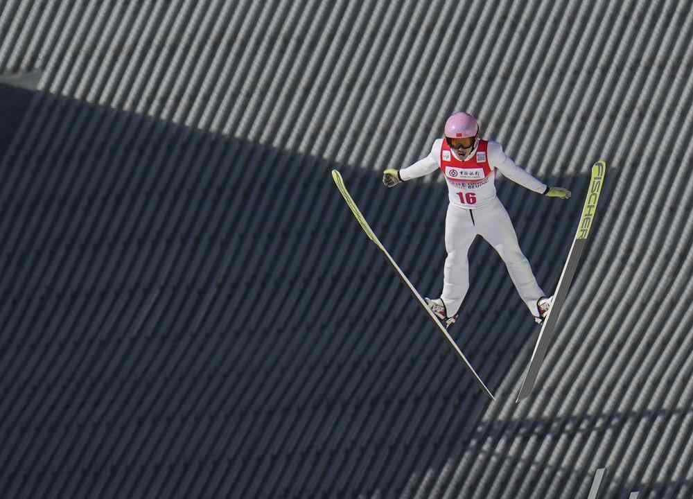 2021年12月5日,“相约北京”系列测试赛2021-2022国际雪联北欧两项洲际杯个人大跳台+10公里越野滑雪比赛在张家口赛区国家跳台滑雪中心、国家越野滑雪中心举行。中国选手赵嘉文在大跳台比赛中。新华社记者胡虎虎摄