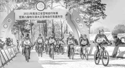 黑龙江省雪地自行车赛。陶钢摄/光明图片