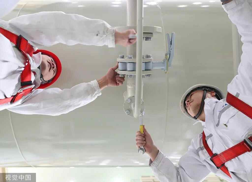 2022年2月7日,工人在山东烟台某车间进行零件安装作业。