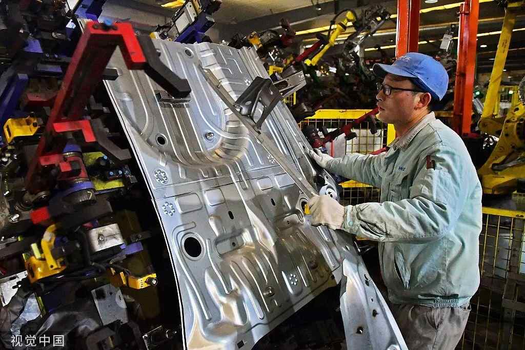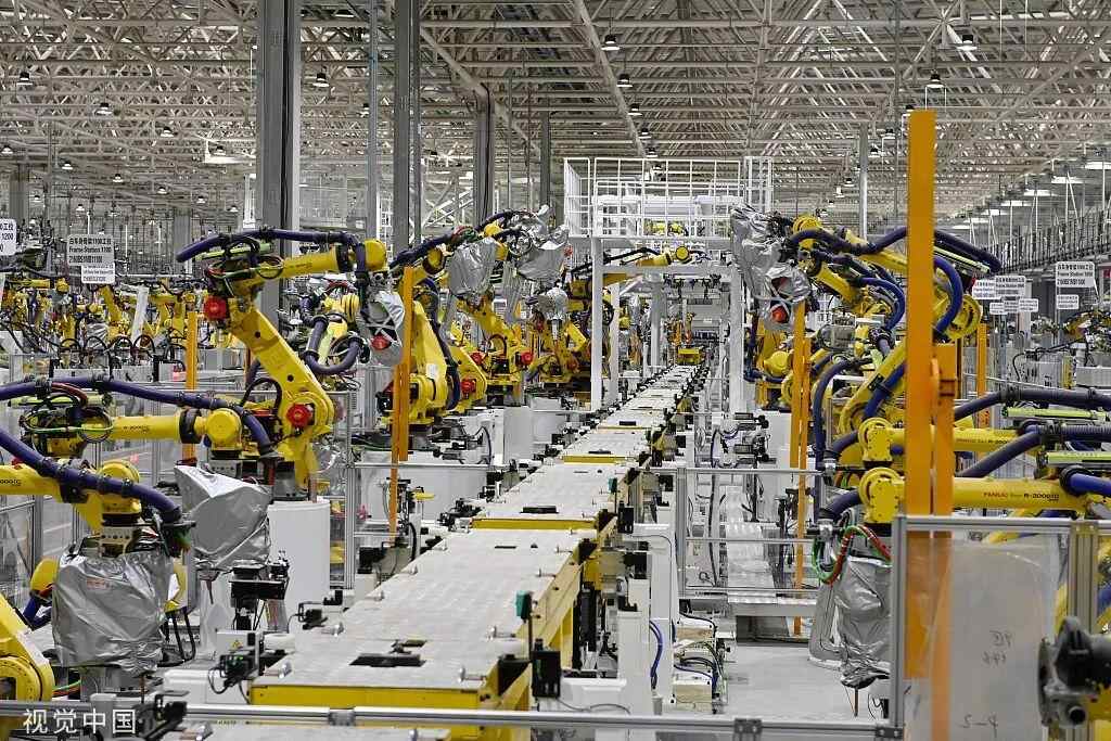 2022年2月7日,重庆,沙坪坝区某汽车生产基地的焊装车间,工作人员正在进行生产设备的调试,确保项目早日投产。