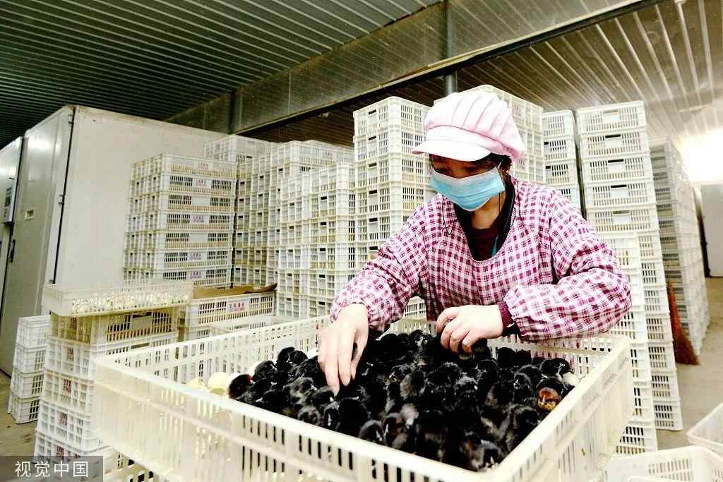 2022年2月7日,湖南省娄底市双峰县印塘乡吴湾村一禽业农民专业合作社,村民在分拣刚出壳的雏鸡。