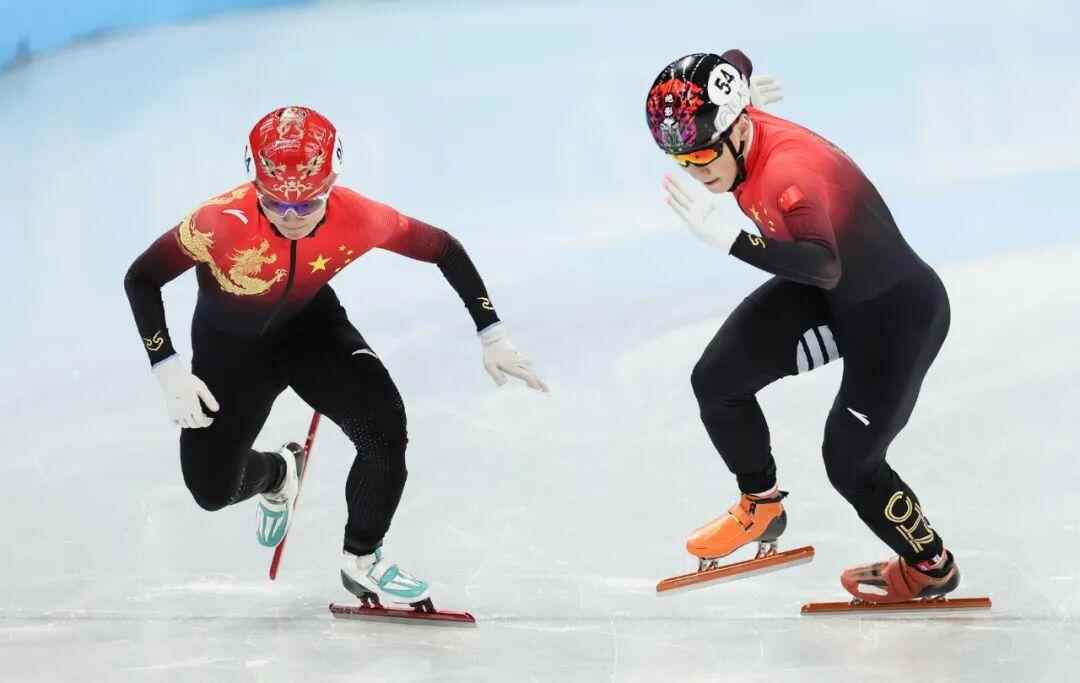 2月7日,任子威(右)与队友李文龙在比赛中出发。新华社记者 兰红光 摄