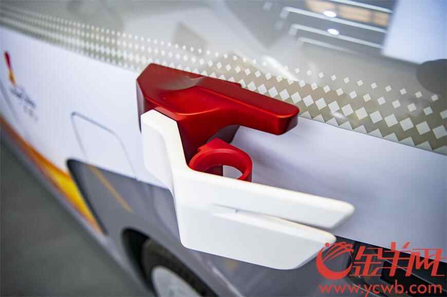 百度阿波罗科技公园内,这台自动驾驶汽车正静静停放在展示区。记者看到,车辆外观与常见汽车有较大的不同,车头更宽更高,整体像一个四四方方的大盒子。右侧车门前方有一个圆形卡扣,据介绍,传递时,火炬就是放置在卡扣中。