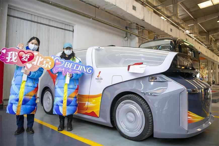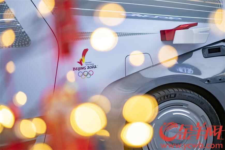 自动驾驶汽车上的冬奥标志和火炬卡扣