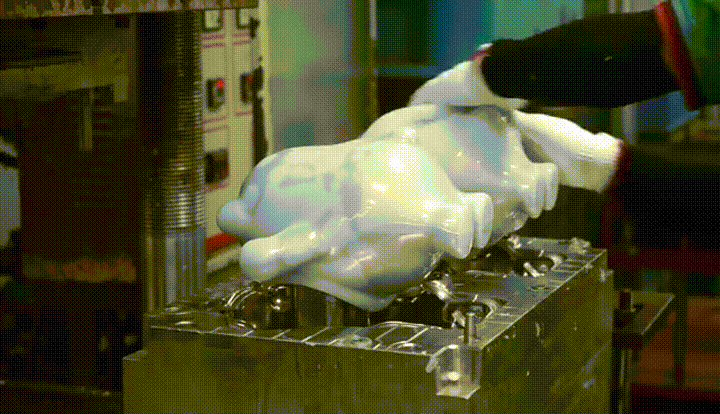 看似平平无奇的硅胶外壳,实际上内有乾坤。左晓川透露,冰墩墩生产的难点在于对硅胶的透明度有较高要求,不能采用普通的硅胶原材料,要采用特殊材料,还要保证生产环境远离杂质。此外,为了让冰墩墩站稳,产品底部的硅胶硬度需要略大,同个产品不同部位硬度不同,也给生产带来了一定的难度。